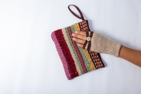 Handgestrickte Alpaka Pulswärmer "Beige Töne"