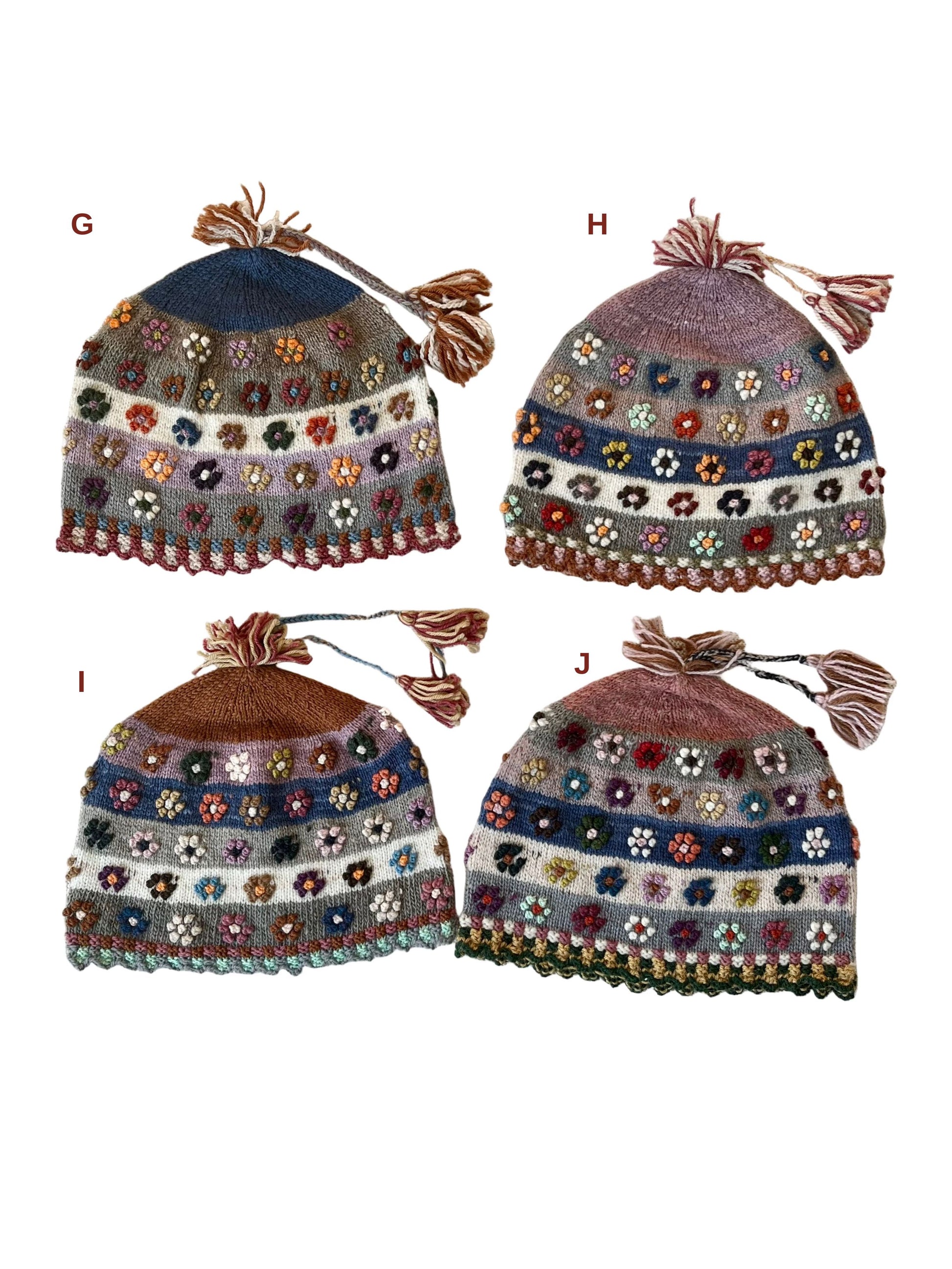 Handgestrickte Mütze aus Schafwolle – Blumenstickerei aus Peru