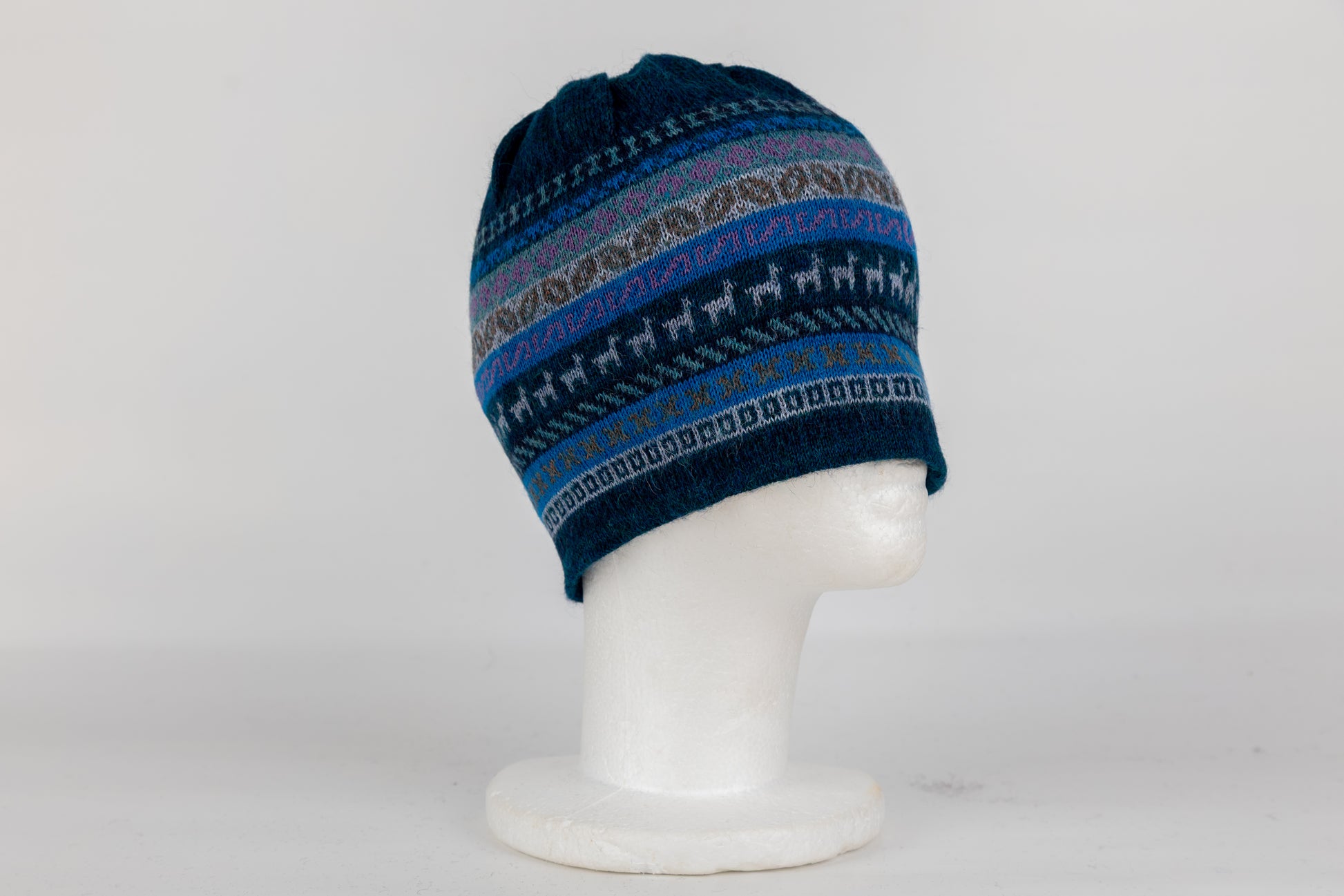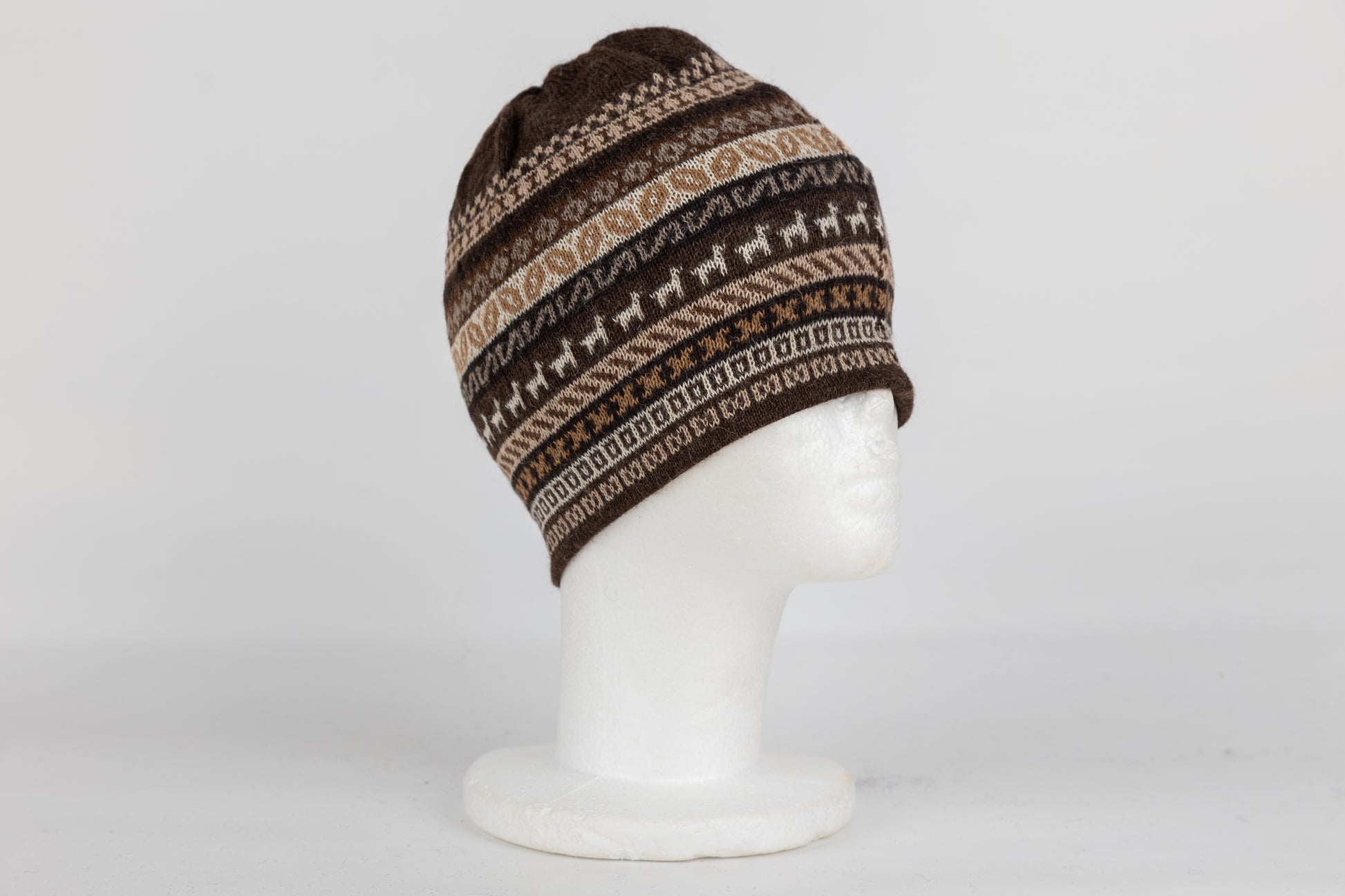 Hochwertige Wendbare Mütze aus reiner Alpaka-Faser mit charaktervollem Lama-Muster. Die praktische Doppelseitigkeit ermöglicht zwei unterschiedliche Looks: Tragen Sie die gemusterte Seite für einen verspielten Akzent oder die einfarbige Variante für dezente Eleganz. Das natürliche Alpaka-Material bietet überlegene Wärmeisolation bei gleichzeitiger Atmungsaktivität und angenehmer Hautverträglichkeit. Ideal für vielseitige Styling-Optionen in der kalten Jahreszeit.